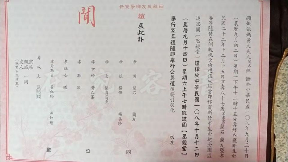殯儀延續母親的環保節儉,至誠精簡,懇辭奠儀。孤哀子心送摯愛母親解脫自在~